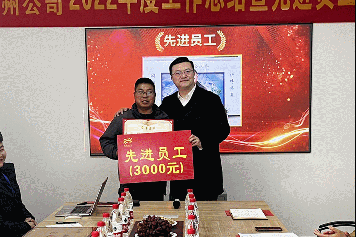 接著,楊總公布隨州公司2022年度先進(jìn)表彰決定及榮獲聯(lián)合水務(wù)2022年度投稿評(píng)選獲獎(jiǎng)人員,化驗(yàn)室榮獲“2022年度先進(jìn)部門”稱號(hào)、機(jī)電部主管張正元榮獲“2022年度先進(jìn)員工”稱號(hào)、人事行政部陳真真和生產(chǎn)部劉偉分別榮獲2022年度宣傳之星三等獎(jiǎng)及2022年妙筆生花獎(jiǎng)。劉總、朱總、黃總分別為其頒獎(jiǎng)并合影留念,楊總鼓勵(lì)先進(jìn)部門及員工在新的一年里繼續(xù)發(fā)揮帶頭作用,不斷精進(jìn)自己,爭(zhēng)取為公司的發(fā)展做出更大的貢獻(xiàn)。同時(shí),也希望各位同事能以先進(jìn)人員為榜樣,虛心好學(xué),踏實(shí)肯干,提高技能,做到自己與公司共同成長(zhǎng),共創(chuàng)未來(lái)。