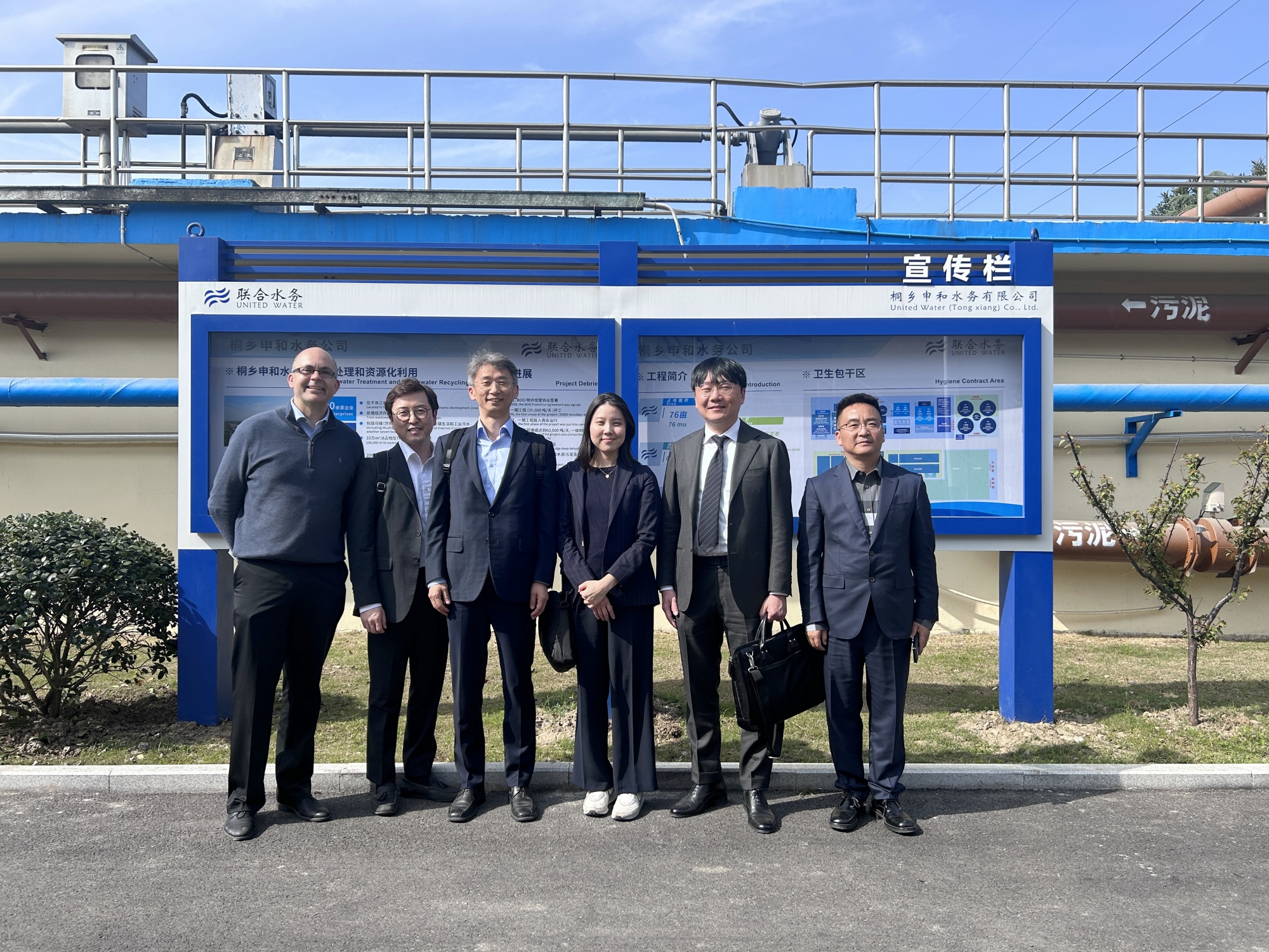 3月28日,在聯(lián)合水務(wù)上市次日首批韓國投資考察團(tuán)一行在聯(lián)合水務(wù)高級副總裁James Gerard Beeson的陪同下蒞臨桐鄉(xiāng)申和水務(wù)有限公司考察交流,桐鄉(xiāng)公司領(lǐng)導(dǎo)層給予熱情接待。