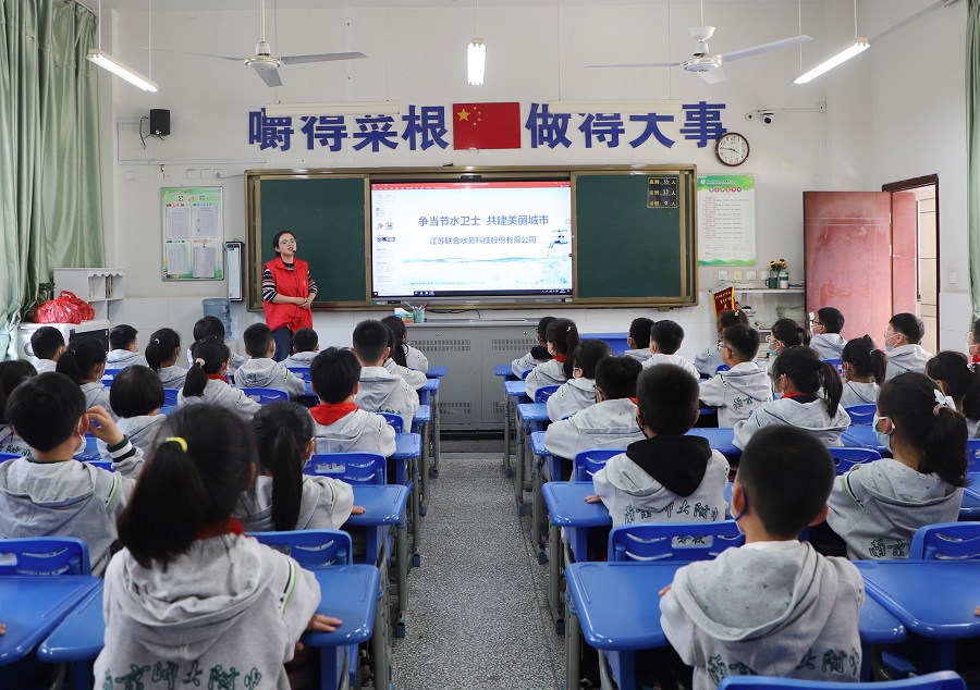 在南京師范大學(xué)附屬小學(xué)宿遷分校,同學(xué)們迎來了一節(jié)特殊的班會(huì)課。聯(lián)合水務(wù)走進(jìn)校園,開展了以“爭(zhēng)當(dāng)節(jié)水衛(wèi)士,共建美麗城市”為主題的節(jié)水宣傳活動(dòng)。課堂上,公司節(jié)水宣傳員向同學(xué)們講解了自來水的起源與制水工藝,分享生活節(jié)水小妙招,互動(dòng)問答的方式得到了同學(xué)們的積極響應(yīng);顒(dòng)最后,工作人員為每個(gè)孩子遞上了文具禮包和節(jié)水宣傳手冊(cè),孩子們拿到禮物后喜悅之情溢于言表,紛紛表示要做一個(gè)知水、懂水、惜水、愛水的環(huán)!靶(zhàn)士”。