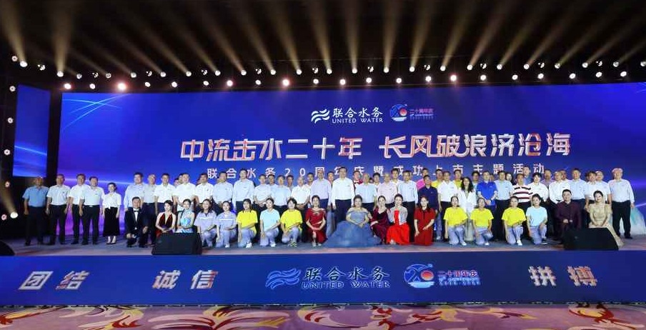 中流擊水二十年,長風(fēng)破浪濟(jì)滄海,聯(lián)合水務(wù)20周年慶主題活動于7月22日在江蘇宿遷市隆重舉行。來自聯(lián)合水務(wù)上?偛亢透鬟\(yùn)營公司的骨干管理人員、員工等齊聚一堂,共同見證聯(lián)合水務(wù)20周年華彩!慶典活動通過聯(lián)合水務(wù)官方微信視頻號同步直播,在線觀看次數(shù)超20000次,點(diǎn)贊次數(shù)超140000次。