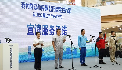 公用安全事關(guān)千家萬戶,事關(guān)城市安全大局,為有效提高城市居民安全防范意識,強化公用安全保障,8月10日下午,宿遷市“我為群眾辦實事·公用安全進(jìn)萬家”首場宣傳活動暨全市行啟動儀式在宿遷市吾悅廣場隆重舉行,聯(lián)合水務(wù)宿遷供水公司作為本地重要民生企業(yè)受邀參加此次活動,活動中,公司代表宣讀服務(wù)承諾,分享用水安全知識,介紹水質(zhì)情況,為宿遷市民用水安全“保駕護(hù)航”。 活動伊始,相關(guān)部門領(lǐng)導(dǎo)發(fā)表了致辭,并介紹了“我為群眾辦實事·公用安全進(jìn)萬家”全市行活動的具體內(nèi)容。在隨后舉行的宣讀服務(wù)承諾環(huán)節(jié)中,公司管網(wǎng)部副經(jīng)理徐曉猛代表公司鄭重承諾:積極響應(yīng)號召,扎實開展“我為群眾辦實事·公用安全進(jìn)萬家”活動,從自身做起,從點滴做起,立足崗位奮力干,積極作為勇?lián)?dāng)。在接下來“我為群眾辦實事·公用安全進(jìn)萬家”全市行活動中,用心優(yōu)服務(wù),用情暢溝通用力解民憂,切實幫助居民家庭消除水、電、氣、信公用安全風(fēng)險隱患,為“強富美高”新宿遷現(xiàn)代化建設(shè)作出應(yīng)有貢獻(xiàn)。