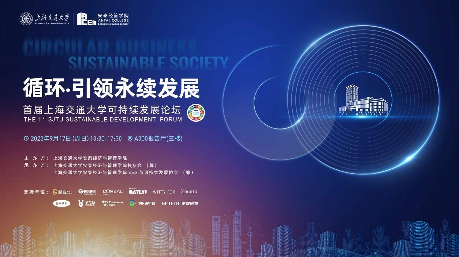 2023年9月17日,由上海交通大學(xué)安泰經(jīng)濟(jì)與管理學(xué)院主辦的首屆上海交通大學(xué)可持續(xù)發(fā)展論壇在上海交通大學(xué)徐匯校區(qū)順利舉辦。本屆論壇以“循環(huán)·引領(lǐng)永續(xù)發(fā)展”為主題,吸引了來自可持續(xù)發(fā)展與ESG相關(guān)領(lǐng)域的投資者、實(shí)踐者、關(guān)注者,以及上海交大校友、在校師生共300余人現(xiàn)場參與本次論壇。