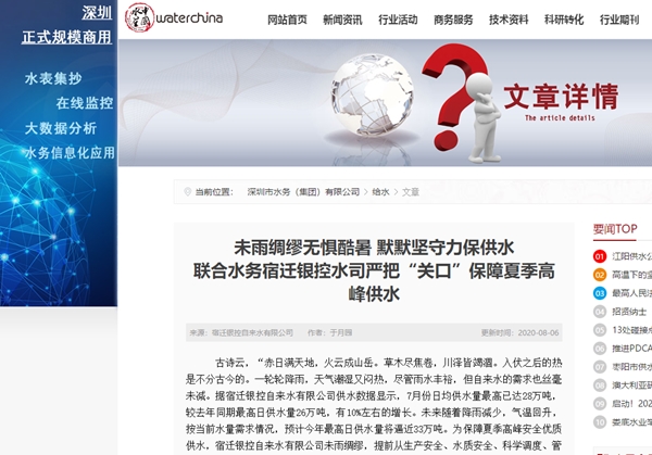 炎炎高溫季,滴滴清泉水,生命之源,不可或缺。確保一年一度的夏季高峰供水安全是供水企業(yè)一項(xiàng)艱巨的任務(wù)。今年夏季高溫到來(lái)前,宿遷銀控自來(lái)水有限公司未雨綢繆,制定多項(xiàng)措施,確保圓滿完成今夏高峰供水任務(wù)。與此同時(shí),高峰供水宣傳工作也同步展開(kāi),制定了詳細(xì)的宣傳方案,擔(dān)負(fù)起公司夏季高峰保供水上情下達(dá)、下情上知、內(nèi)外交流的重要職能。通過(guò)高峰供水宣傳引導(dǎo),公司內(nèi)部在規(guī)范管理、提高效益和效率、優(yōu)質(zhì)服務(wù)等多方面下功夫,扎實(shí)推進(jìn),激發(fā)員工正能量;對(duì)外界,準(zhǔn)確傳達(dá)公司供水的有力舉措、打贏高峰供水保衛(wèi)戰(zhàn)的決心,展示我們的優(yōu)質(zhì)供水服務(wù),傳遞公司節(jié)水、護(hù)水、愛(ài)水的理念,樹(shù)立公司良好的社會(huì)形象,贏得了社會(huì)各界的廣泛認(rèn)可。 打好報(bào)社傳統(tǒng)媒體與新媒體組合拳。市級(jí)主流媒體《宿遷日?qǐng)?bào)》是每年都要宣傳的傳統(tǒng)媒體平臺(tái),隨著新媒體開(kāi)發(fā),“速新聞”、“宿遷網(wǎng)”、“宿遷手機(jī)臺(tái)”、微信公眾號(hào)等一些與時(shí)俱進(jìn)的新媒體方式也層出不窮。今年公司的宣傳以《宿遷日?qǐng)?bào)》、《宿遷日?qǐng)?bào)宿豫版》傳統(tǒng)媒體為依托,同時(shí)采用了“速新聞”、公司微信公眾號(hào)推送系列報(bào)道、員工發(fā)微信朋友圈等方式,更利于提升宣傳效果。