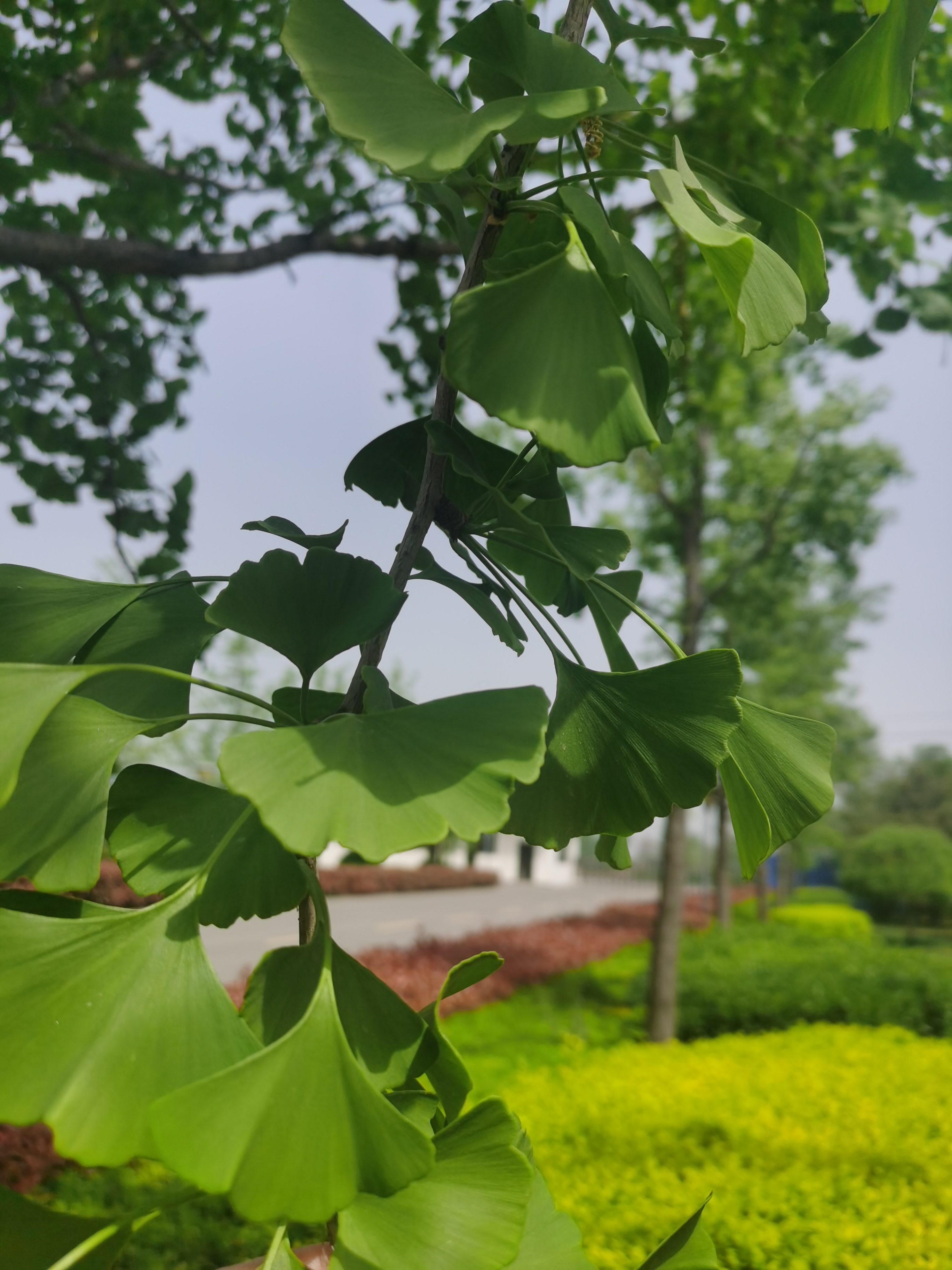 春末夏初,天氣漸熱,百花園里爭奇斗艷的櫻花、桃花、梨花、海棠慢慢謝了幕,晉華園里路旁的銀杏樹已然在不經(jīng)意間長滿了深綠色的扇形葉片如同一把張開的綠絨大傘,碧綠的銀杏樹與銀灰色的馬路交相輝映,形成獨特的風景。