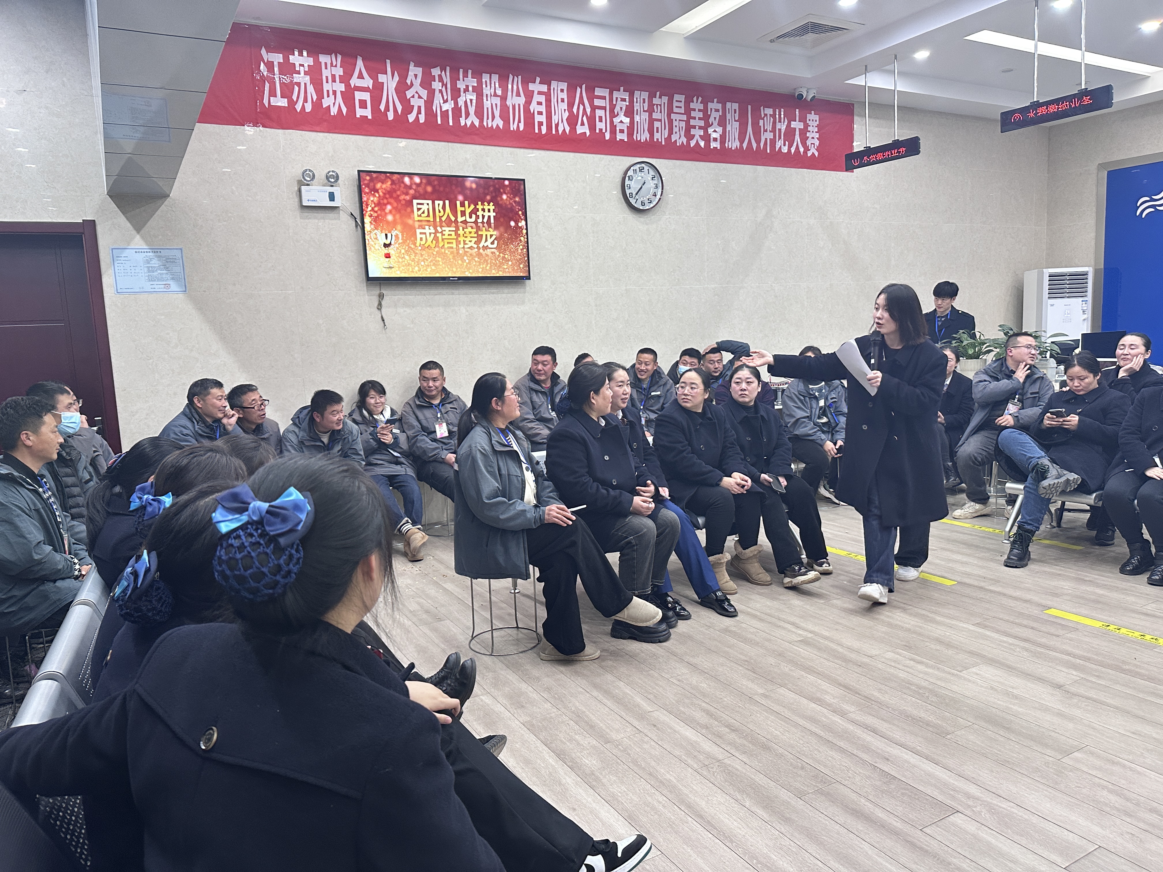 活動開始前,客戶服務部經(jīng)理陳美菊講話,她肯定了部門在2023年度所取得的成績,也肯定了所有客服人的付出,在對全體客服人表示感謝的同時,希望2024年客服工作能再升級,服務水平再上新臺階。為了摸清大家對工作中所學知識的掌握程度以及處理問題的能力,現(xiàn)場設置了知識競答環(huán)節(jié),內(nèi)容緊緊圍繞供水與服務的相關(guān)知識,讓大家在輕松歡快的氛圍中能收獲更多知識。隨后大家以小組賽的形式進行了成語接龍游戲,通過游戲增進大家的集體榮譽感以及團隊合作精神。今年新增了投票環(huán)節(jié),現(xiàn)場讓所有人員寫下心目中優(yōu)秀的客服人及抄收員,并進行無記名投票與現(xiàn)場唱票,全程透明公正公開。
