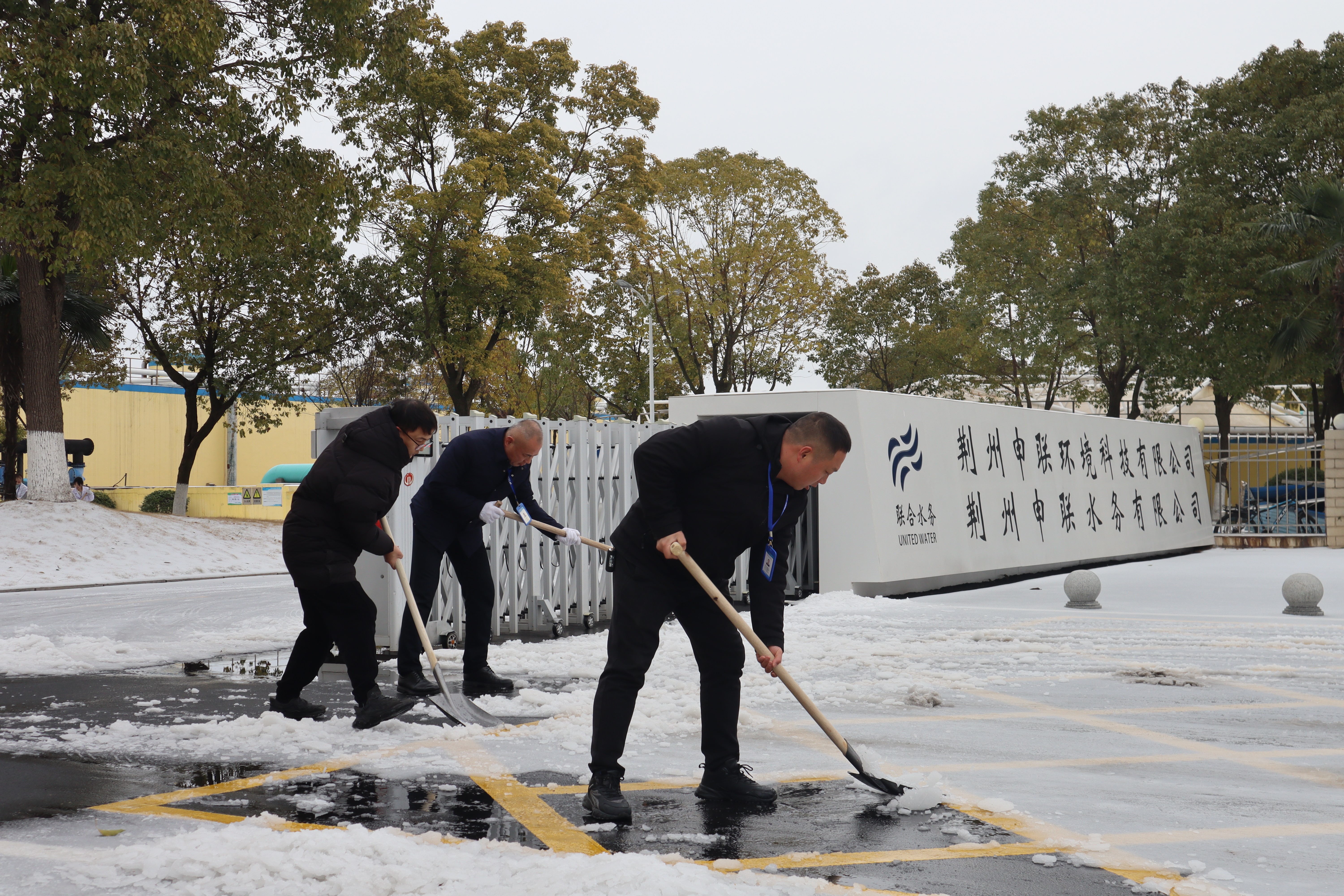 2月22日荊州市迎來了新一輪寒潮大風(fēng)、低溫雨雪冰凍天氣的考驗,聯(lián)合水務(wù)荊州公司整個廠區(qū)被包圍冰雪之中,全體職工在聯(lián)合水務(wù)荊州公司總經(jīng)理鄭彬的帶領(lǐng)下,扛起鍬鎬、拿著掃帚,分工明確,你鏟我掃,個個奮力爭先,無畏嚴(yán)寒苦累,全力清理道路積雪、鏟除水池及扶梯上的冰凌,迅速恢復(fù)廠區(qū)行進順暢,一片秩序井然之象。