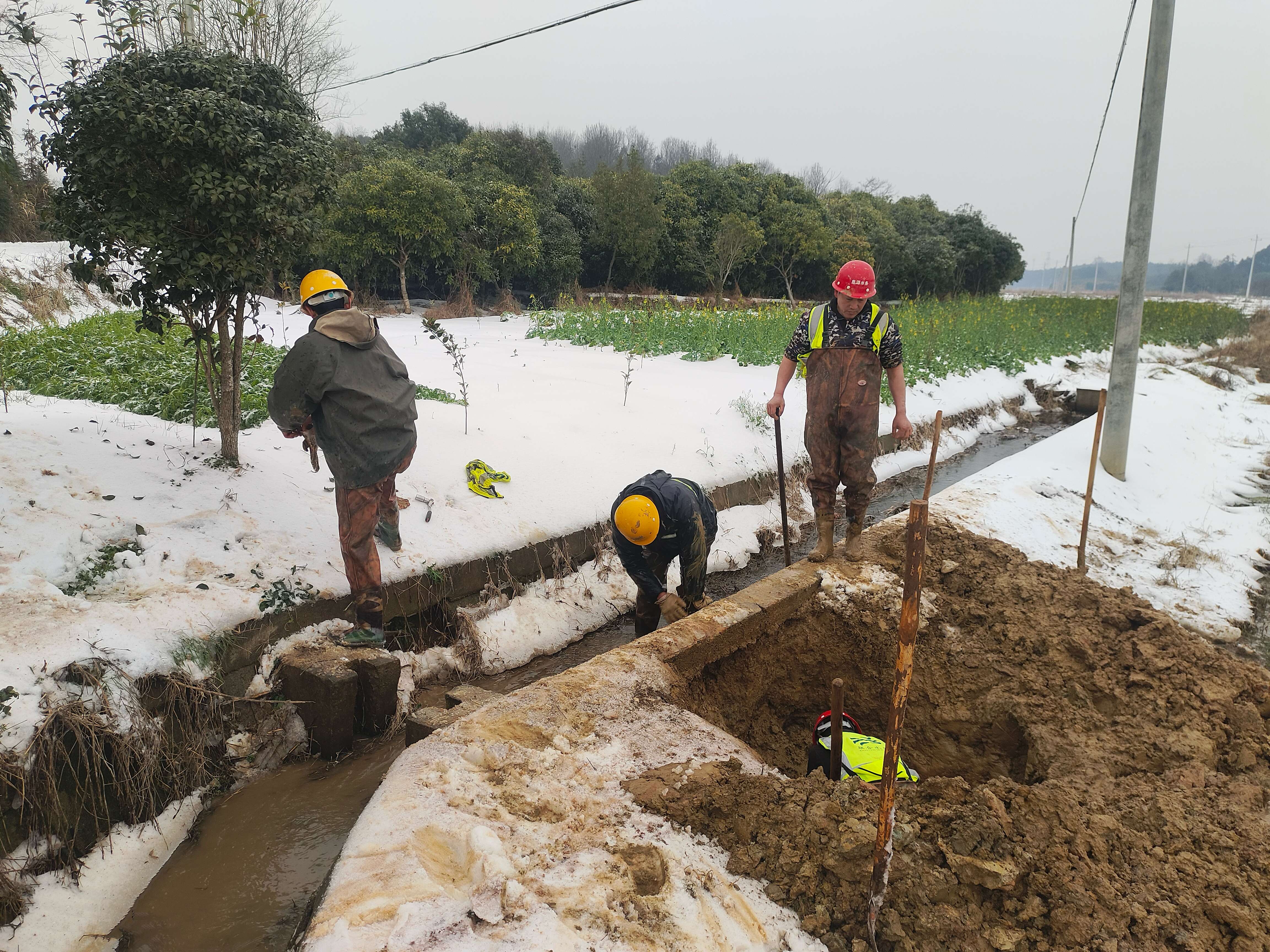 鏖戰(zhàn)冰雪保供水,管網(wǎng)小隊在行動。近日,咸寧思源水務接到報修電話,張公廟片區(qū)管道有漏水現(xiàn)象,“管網(wǎng)小分隊”立即聞聲而動,開展管網(wǎng)維修作業(yè)。寒風刺骨,雨雪交加,冰水浸濕衣服,一雙雙手凍得通紅,面對困難,搶修人員二話沒說,一鐵鍬一鐵鍬的挖開泥土,用雙手伸入冰冷的泥水中將漏損處淤泥清理干凈。粗糙的雙手,劃傷、凍裂簡單處理后繼續(xù)上陣,腳下冰冷的淤泥,每走一步都很吃力,他們費勁地一點一點把受損水管從淤泥里拖動出來,最終于下午四時許修復管道,恢復正常供水。管網(wǎng)維修人員用精湛的專業(yè)技術和嚴謹?shù)墓そ尘,高效?/span>、高質量、高標準、高水平完成搶修任務,保障了張公片區(qū)的供水安全。