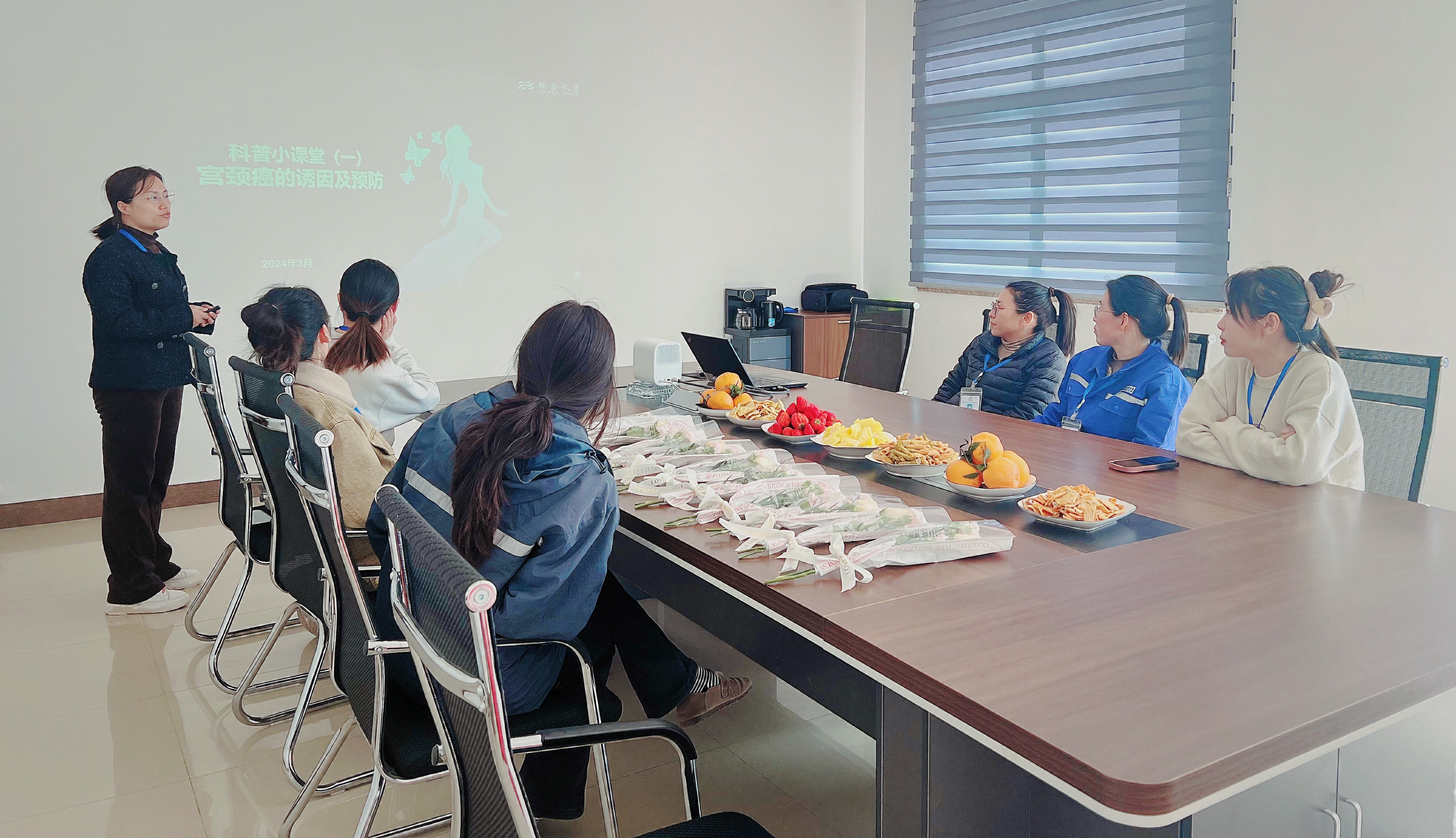 人間最美三月天,春花爛漫展新顏。為積極營(yíng)造和諧、溫馨、健康的節(jié)日氛圍,聚焦女性正能量、幸福獲得感,3月7日,在第114個(gè)“三八”國(guó)際勞動(dòng)?jì)D女節(jié)來(lái)臨之際,曲沃聯(lián)合凈水有限公司組織全體女職工開展了——致敬“她”力量,健康普惠澤的主題活動(dòng)。 一、致敬“她”力量 本次活動(dòng),以茶話會(huì)的輕松愉悅形式開展,向女士們表達(dá)節(jié)日祝福,致敬“她”力量。 同時(shí)為“女神們”準(zhǔn)備了大家喜好的水果、零食,大家互訴衷腸、嘮家常......相互分享禮讓互敬的氛圍,是聯(lián)合水務(wù)女性職工柔性、團(tuán)結(jié)的最好展現(xiàn)。 二、健康普惠澤 本次茶話會(huì)的同時(shí),也以“科普小課堂”的形式,分享宮頸癌的誘因及預(yù)防措施,旨在科普相關(guān)病毒的基本常識(shí)、預(yù)防措施、干預(yù)手段等,防患于未然,健康雙重保險(xiǎn)。