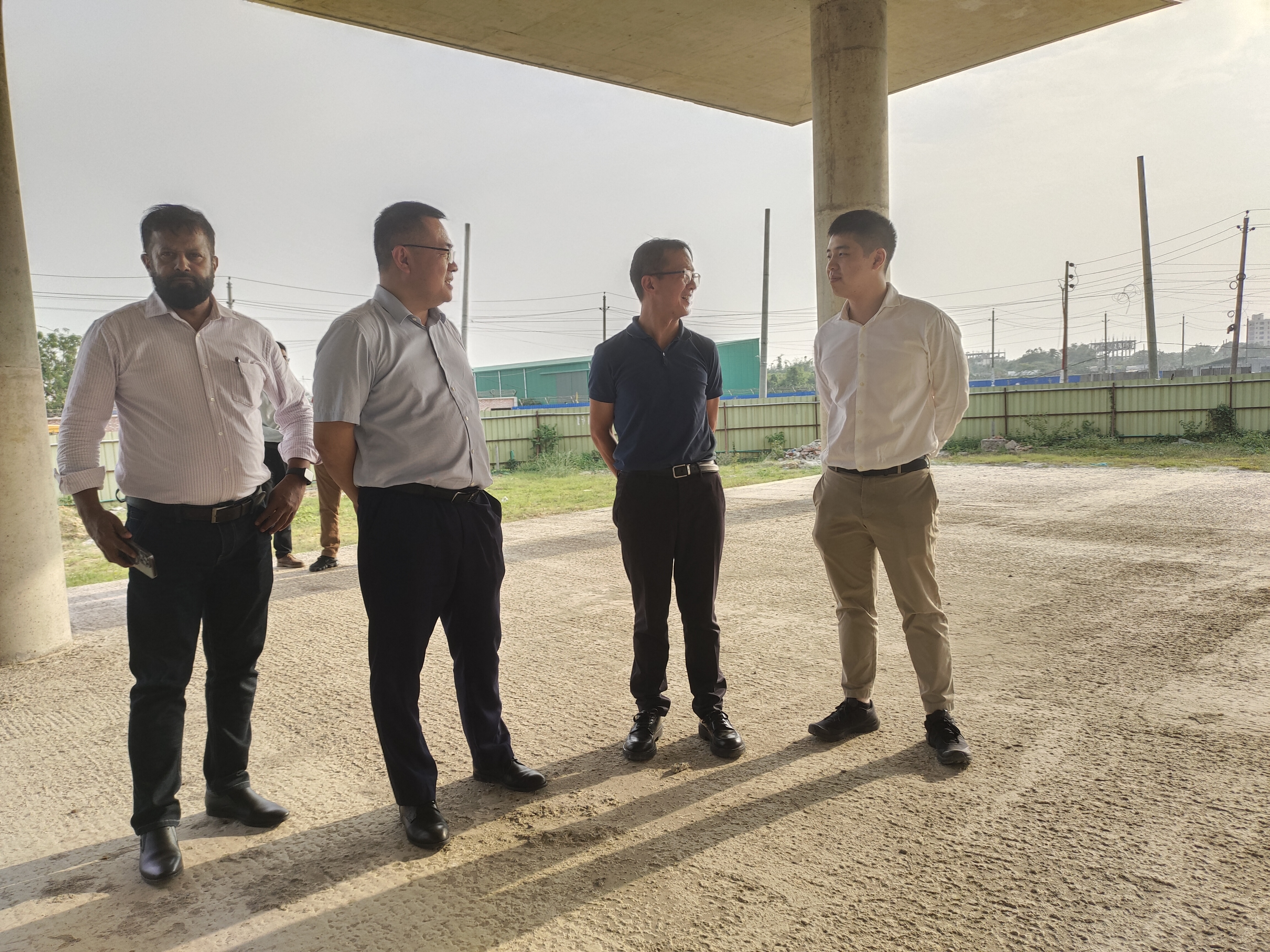 在聯(lián)合水務(wù)海外事業(yè)部總經(jīng)理俞世晉、海外事業(yè)部副總經(jīng)理兼孟加拉項目總經(jīng)理戴大瑤等人的陪同下,考察組一行先后參觀了項目的施工現(xiàn)場、一期化驗室及客戶服務(wù)中心。在現(xiàn)場辦公樓前,戴總具體介紹了未來辦公樓集約利用與科學(xué)布局,并對項目一期的運營情況作簡要介紹。