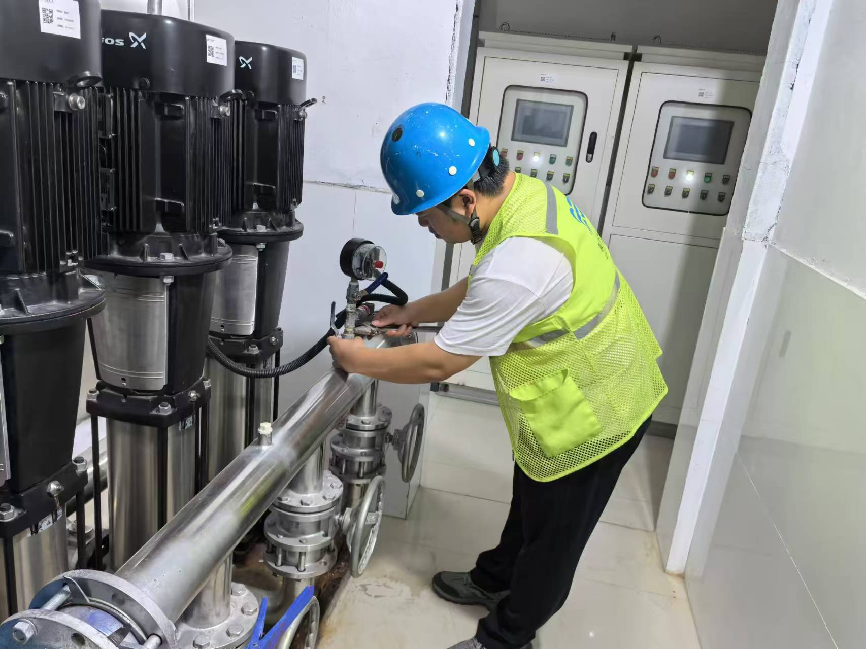 以凝聚“聯(lián)合”力量“穿針”,于滿足城市供水需求處“引線”,江蘇聯(lián)合水務(wù)科技股份有限公司保障供水安全的“針腳”越織越密。在一次次高峰供水無虞的背后,是跨部門合作、全舉措保障的共同作用結(jié)果。 多部門聯(lián)動,解決“二次供水”低壓問題 高層出現(xiàn)水壓低的原因可能蟄伏于二次供水系統(tǒng)中的每一個角落,可謂是棘手問題。近日,紫金名門小區(qū)有兩棟用戶反映水壓小,管網(wǎng)人員聯(lián)合二次供水巡檢員進(jìn)行多次排查無果后,隨即請示機電設(shè)備部支援,經(jīng)過三部門聯(lián)合排查,最終將“病因”鎖定在廢棄增壓泵房內(nèi),此次排查充滿波折,但各部門協(xié)同讓難題迎刃而解。