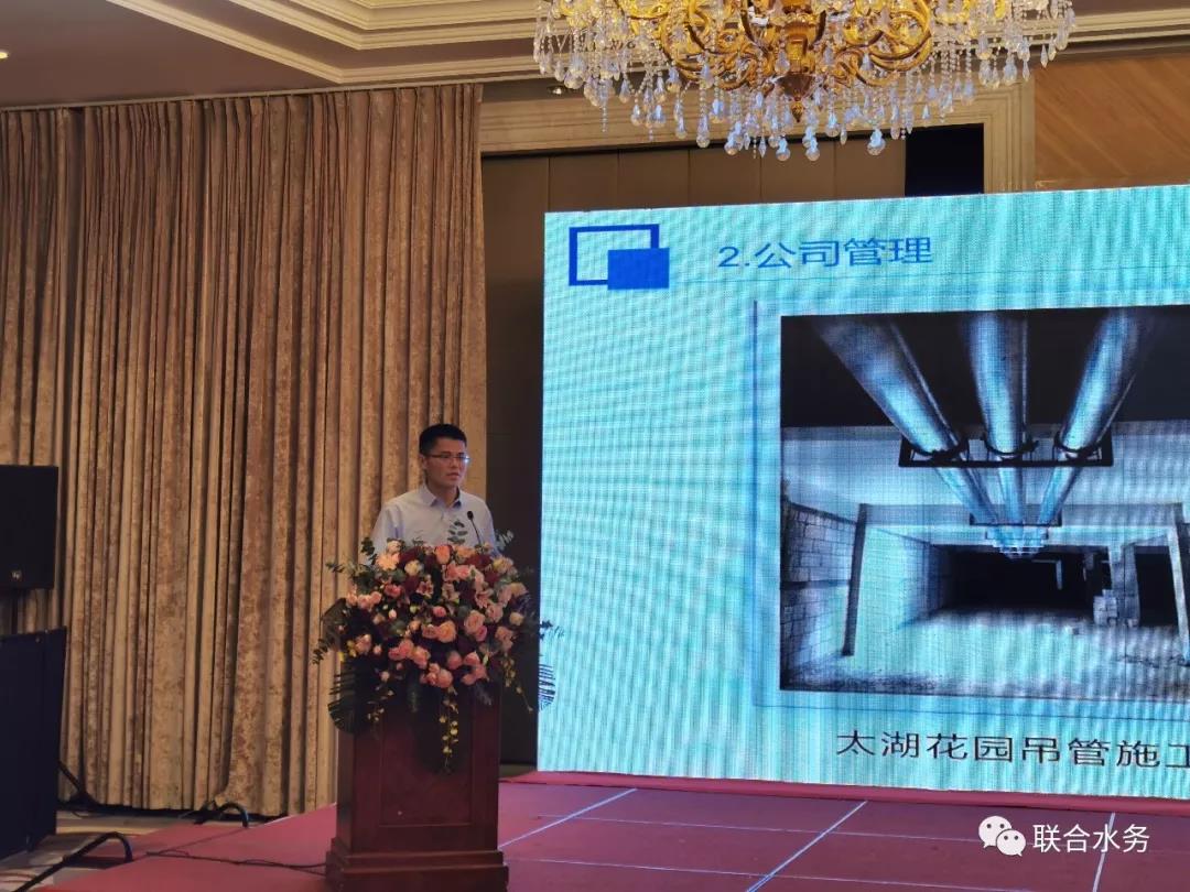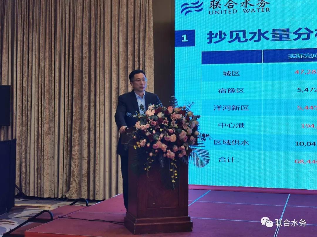 圖2:宿遷聯(lián)合市政工程有限公司總經(jīng)理梁丹先生作工作總結(jié) 宿遷銀控自來水有限公司總經(jīng)理曾真做2019年宿遷公司工作匯報(bào)時(shí)說:宿遷供水項(xiàng)目2019年全年供水安全、穩(wěn)定,嚴(yán)峻形勢下,圓滿度過夏季高峰供水期;工程建設(shè)卓有成效,河湖連通工程全面完工運(yùn)行,確保了原水供應(yīng)的安全可靠,二水廠四期工程順利施工中,明年公司供水能力將大大提升,達(dá)到43萬噸/日;農(nóng)村管網(wǎng)改造完成階段性任務(wù);全新GIS平臺(tái)上線運(yùn)行,客戶服務(wù)語音呼叫系統(tǒng)全面升級(jí)、網(wǎng)上營業(yè)廳正式上線,信息化建設(shè)取得了很大發(fā)展;黨務(wù)建設(shè)有了重大突破,公司黨總支升格為黨委,黨務(wù)活動(dòng)開展的有聲有色;文明創(chuàng)建再創(chuàng)佳績,連續(xù)第三次蟬聯(lián)“省文明單位”。曾總同時(shí)指出,公司也要正視自身尚存在的一些不足,如產(chǎn)銷差與總部要求還有不小的差距,2020年,降低產(chǎn)銷差任務(wù)艱巨,但他堅(jiān)信只要大家共同努力,就能突破瓶頸,找到新的出口。2020年,宿遷公司制定了有效降低產(chǎn)銷差、確保二水廠四期如期運(yùn)行、配合集團(tuán)總部圓滿完成公司上市各項(xiàng)工作的三大目標(biāo)任務(wù)。