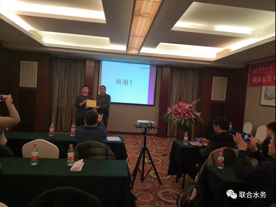 圖1:桐鄉(xiāng)申和水務(wù)有限公司總經(jīng)理沈建新先生作工作總結(jié) 接著,沈總頒發(fā)了2019年度先進(jìn)員工獎,化驗員劉鋮良被評為2019年度先進(jìn)員工。2020年桐鄉(xiāng)公司全體員工將以先進(jìn)員工為榜樣,認(rèn)真努力做好每一份工作,爭取為公司做更大的貢獻(xiàn)。