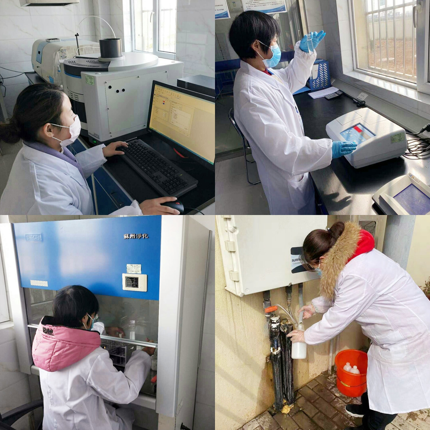 圖2:堅(jiān)守一線 確保生產(chǎn) 四、加密監(jiān)測(cè)、確保水質(zhì) 作為水質(zhì)安全的守護(hù)者,水質(zhì)檢測(cè)中心人員一如既往地穿梭在示范區(qū),從原水、過(guò)程水、出廠水到管網(wǎng)水加強(qiáng)水質(zhì)監(jiān)測(cè)。他們說(shuō):“越是關(guān)鍵時(shí)刻,越要恪守初心,全力保障好整個(gè)示范區(qū)的用水安全!”