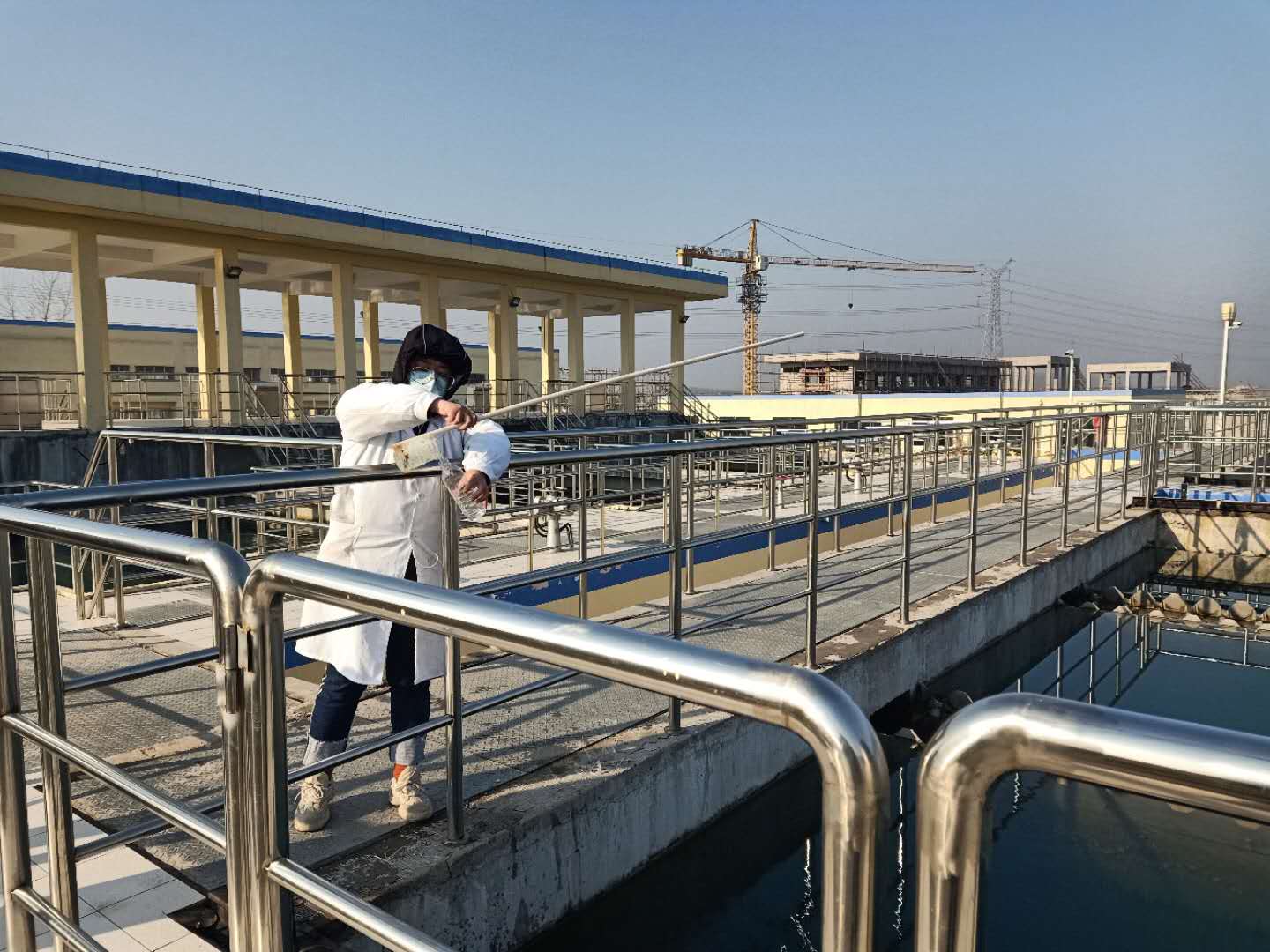 圖2:水質(zhì)化驗(yàn)員取水樣進(jìn)行加密檢測