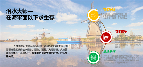 問水篇 作為走遍山南海北的環(huán)保人,看慣祖國眾多的江河湖川溪,也許未曾深刻思考過這亙古的自然之水為何物。從山麓汩汩而泄,在平原波光泛濫,在浪濤中騰騰裊裊,在歷史中鑄成永恒,這就是她的含義: 既是生命過程,又是精神傳承。她包含降雨(雪)、蒸發(fā)、下滲及地質構造等過程,也經歷自然老化、污染填埋、功能退化等周期;她是動物、植物、微生物等生命形式的有機結合體,也是蘊含文化、歷史、休閑、審美、船運等功能的載體。她時而柔順,滋養(yǎng)世界,潤物無聲;也時而狂躁,暴雨肆虐,洪水橫流。 正是她這些復雜的特性,決定了我們不能用單純的眼光看待水環(huán)境問題,水多(洪澇問題)、水少(干旱問題)、水臟(水污染問題)、水功能喪失,其本質上是水資源時空分布不均和水陸發(fā)展不協調的問題。從根本上解決水環(huán)境問題,應從水中延伸到陸地,從單線治理延伸到時空綜合整治,從工程建設延伸到人文關懷,從環(huán)境修復延伸到社會經濟的統(tǒng)籌發(fā)展。 理水篇 縱觀國內外水環(huán)境治理發(fā)展歷程,無一不是從片面到系統(tǒng),從硬質到柔性,從工程建設到功能提升的蛻變。 治水大師—荷蘭 荷蘭作為世界最大的河口三角洲之一,歐洲主要河流如萊茵河、繆斯河、斯海爾德河等在其境內匯聚,全境無山,地勢低洼,60%國土面積低于海平面,直面北海風暴潮的沖擊。 特殊的地理水文環(huán)境造就了荷蘭特殊的治水歷史,12世紀起填海造陸,開始了長達7個世紀的與水爭地的浩大工程。由于飽受水患影響,20世紀起,荷蘭進入水利工程快速發(fā)展期,在此期間誕生了號稱“現代世界第七大奇跡”的荷蘭三角洲工程及南海工程。聲勢浩大的與水抗爭,并沒有從真正意義上解決荷蘭的水患問題,特別是1995年的洪災,荷蘭受災面積170平方公里,25萬人口遷徙,這次將荷蘭防洪治水工程引向了另一個方向-還地于河(Room for the River),開啟了人水和諧的新篇章。