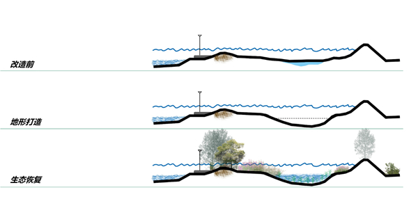 備注:微地形改造及生態(tài)修復 鄭州某河道生態(tài)修復完成后,水體質量達到Ⅲ類水標準。除原生物種以外,發(fā)現20種野生花卉,12種鳥類與60余種昆蟲及數種兩棲類生物。河道中的物種多樣性增長了30%,甚至發(fā)現了國家級野生保護動物“黑水雞”在此筑巢繁殖。
