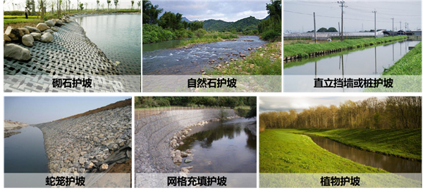 備注:生態(tài)駁岸一覽,圖片素材來源于網絡 1990-2002年間共有28000個河川治理項目采用了這一模式,在2002年實施的5500項河川治理工程中,約70%工程采用了多自然型河川的理念。然而通過對1730個工程的效果評價,仍存在植被恢復差、人工痕跡重、覆土流失嚴重、自然未恢復、魚類棲息少、外來物種多、環(huán)境不和諧、泥沙堆積多等問題。經過復盤,重新定義了“多自然河川”,即:以河川全體的自然節(jié)律為基礎,充分考慮當地居民的生活、歷史、文化和諧,以保護河川原有生物的棲息、繁殖環(huán)境并創(chuàng)建多樣的河川景觀為目的,實施河川的管理。這意味著日本河川的建設從個別區(qū)間的多自然化向整體的多自然化轉變,從獨立水利工程向與當地生活、歷史及文化相結合轉變,從水利工程建設向流域管理轉變。