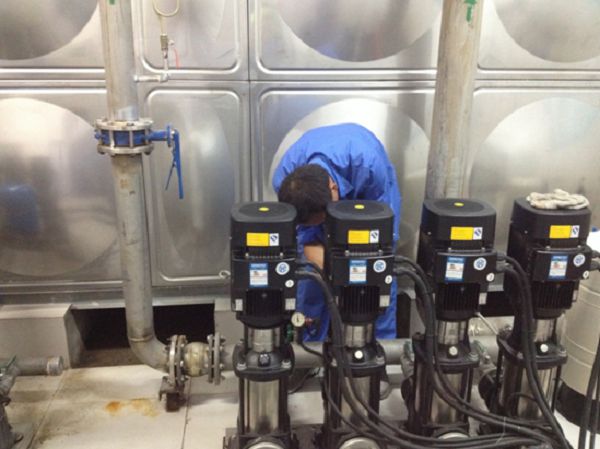 (圖4:二次供水加壓系統(tǒng)巡檢人員對設備進行日常巡檢)