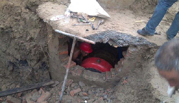 (圖12:管網(wǎng)維修人員在狹小的操作坑內(nèi)進行管網(wǎng)搶修)