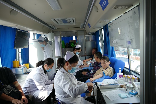 (圖1:獻(xiàn)血前溫馨合影) 10月23日上午,秋陽和煦,溫暖人心。按照事先排定的序列,由路途較遠(yuǎn)的洋河、龍河、皂河三個區(qū)域供水服務(wù)中心第一批次獻(xiàn)血,工程公司員工為第二批次,下午是二水廠各部門及水檢公司人員獻(xiàn)血時(shí)間。還未到8:30分,三個中心的同事們便已早早來到了公司第二水廠辦公樓前廣場等候。這一邊血站工作人員對獻(xiàn)血車設(shè)備儀器接電調(diào)試,另一邊大家已經(jīng)在辦公樓大廳里填表、測血壓、心率。原本9:00才開始的活動,因?yàn)榇蠹覠崆楦甙海崆伴_始。填好表,初次體檢合格的同事來到獻(xiàn)血車前自動排隊(duì),有序上車進(jìn)行再次體檢及獻(xiàn)血。每個人笑意盈盈,因?yàn)樾闹杏袗。今年的獻(xiàn)血活動,除有特殊原因不能參加外,共計(jì)有,169人報(bào)名,經(jīng)現(xiàn)場測量血壓、心率及進(jìn)行轉(zhuǎn)氨酶等項(xiàng)目血液初篩,最終符合獻(xiàn)血要求的實(shí)際獻(xiàn)血人數(shù)為79人,共計(jì)獻(xiàn)血量達(dá) 25300ml。