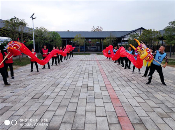 圖/ “鼓動人心”活動現(xiàn)場 最后一個項目是“龍騰盛世”。所有人齊心協(xié)力將零件組裝成一條活靈活現(xiàn)的龍,并在教練的指導(dǎo)下完成龍騰四海、盤龍云海及游龍戲水三個動作。這是一個大型創(chuàng)作類項目,趣味性和團(tuán)隊合作性極強(qiáng)。大家各司其職,制作龍骨、畫龍鱗、粘龍頭龍尾,不到一刻鐘的時間,兩條游龍就制作完成。在舞龍環(huán)節(jié),大家專心聽、用心舞,兩隊的舞龍動作都得到了教練的高度贊揚。最后,在教練“風(fēng)水越來越順、生活越來越好”的祝福中結(jié)束了愉快而充實的團(tuán)建拓展活動。